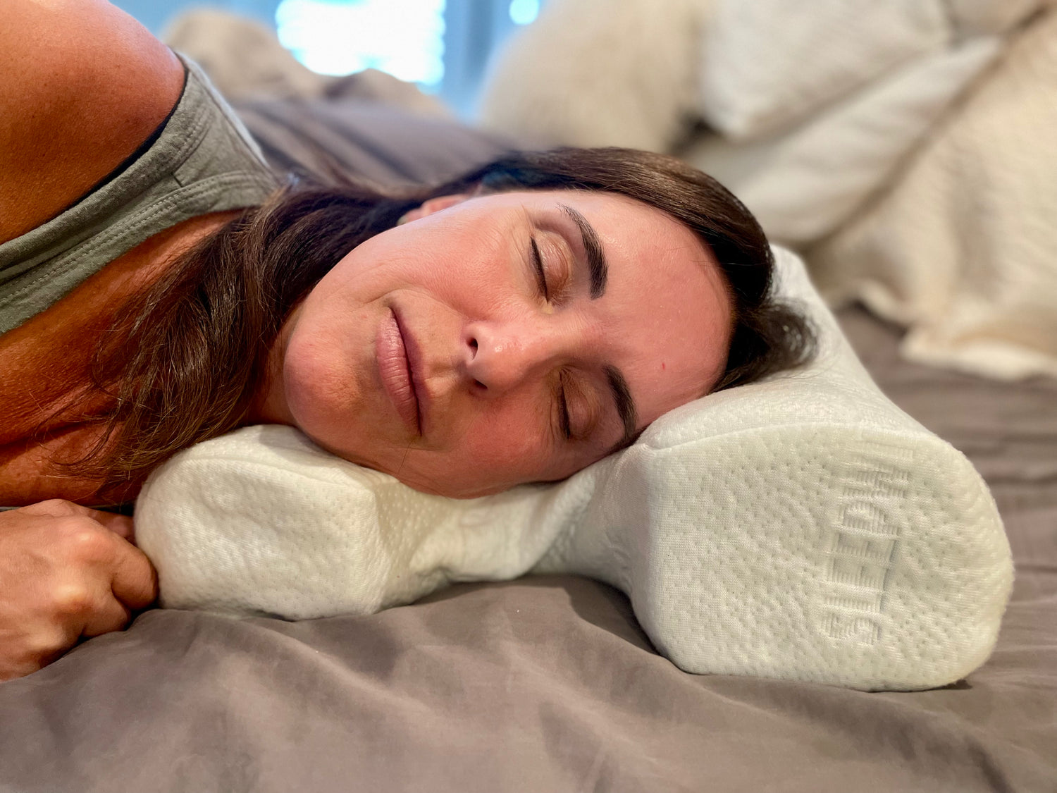 15+ years ago, I absentmindedly hung a big beautiful mirror next to the side of my bed, nothing worse than rolling over one morning to catch a glimpse of my face with my pillow smashing wrinkles into the side of it- deep lines and wrinkles it was creating just by laying on it – I was 30 looking like 50! I literally shot out of bed… right then and there I cut up my own pillow. Thinking others might be as "Vanity Aware", I made a few samples. I was set, others just like me will love this face saver...But life got busy: baby/husband/work/ everything else. Until fast forward a decade+ later and… one wrong move in a bootcamp workout led to a burst cervical vertebrae disc, and overnight my right arm was paralyzed from a dead nerve. So what started as a “Vanity” Pillow suddenly became a necessity for me. It took artificial disc replacement surgery and over a year to get my arm back … it wasn’t just vanity I needed my custom pillow for anymore, but quite literally, saving my own neck. -Jennifer Baeseman, Founder